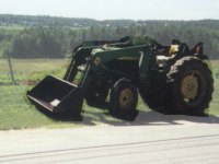 This is a picture of a John Deere bucket tractor. The bucket is used to shovel manure and to plow snow.
